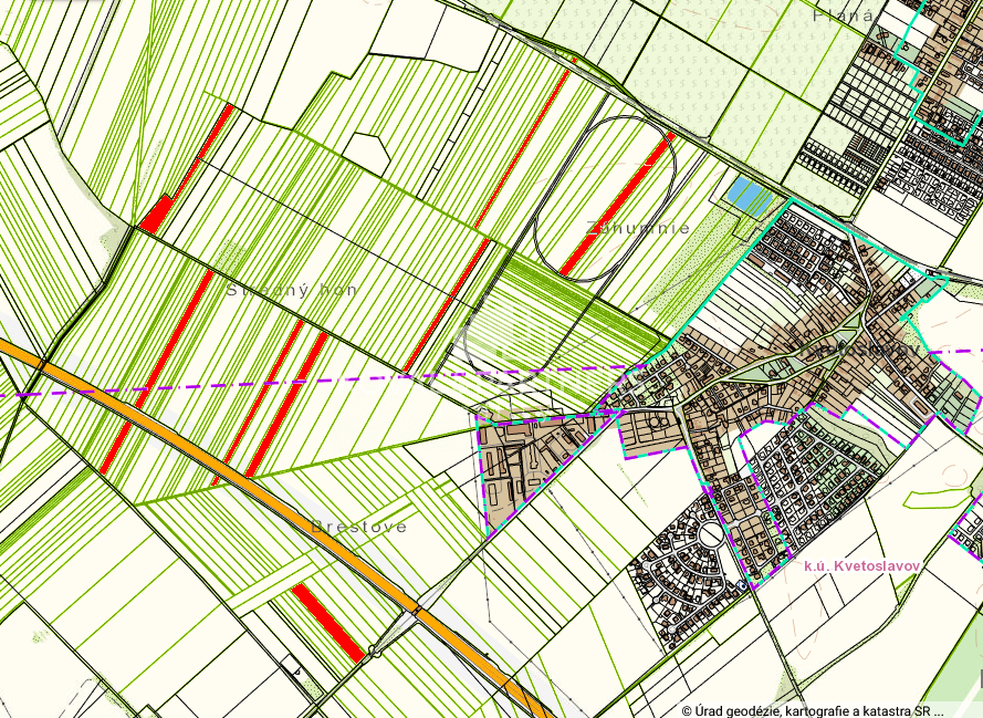 Ponúkame Vám na predaj podiel na pozemkoch v katastrálnom území Kvetoslavov. Na obrázku sú označené červenou farbou. Všetky pozemky sú mimo zastavaného územia obce a sú označené ako orná pôda. Predáva sa podiel 2/5 z celkovej rozlohy 99.424m2. Možnosť prikúpiť aj ďalšie podiely.
