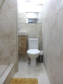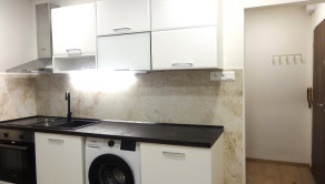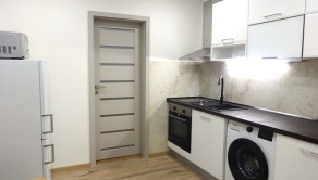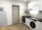 Ponúkame Vám na prenájom veľmi pekný, kompletne zrekonštruovaný, nový a novozariadený 1 izbový byt v Leviciach na ul. Okružná. Úžitková plocha: 32,60m2. V byte sa nachádza vstupná chodba, kuchyňa, 1 obývacia izba, kúpeľňa spojená s WC. V byte sú urobené nové stierky a maľovka. Plastové okná. Nové interiérové a vchodové bezpečnostné dvere. V kúpeľni je dlažba, na chodbe a v kuchyni nová plávajúca podlaha, v izbe sú nanovo obrúsené, nalakované drevené parkety. V oboch miestnostiach sú nové radiátory. V kuchyni je moderná kuchynská linka s pračkou, elektrickou doskou a rúrou. Je tu jedálenský stôl so stoličkami, nová chladnička s mrazničkou a mikrovlnka. V izbe je nová šatníková skriňa s komodou, konferenčné stolíky, sedačka, TV. Na chodbe je botníková skrinka. V kúpeľni nový keramický obklad, sprchový kút, WC, kúpeľňové skrinky a osvetlenie nad umývadlom. Byt sa nachádza na prízemí panelového bytového domu s výťahom. Výhody: pekný a vkusny byt, ktorý ešte dýcha novotou, slušný vchod, parkovanie pred bytovkou, blízko je centrum, škola, obchody. Nájomná zmluvy sa robí minimálne na rok. Preferencia dlhodobého nájomného vzťahu, bez zvierat. Cena: 470,-€/mesiac + kaucia vo výške jedného nájomného, čiže tiež 470,-€.