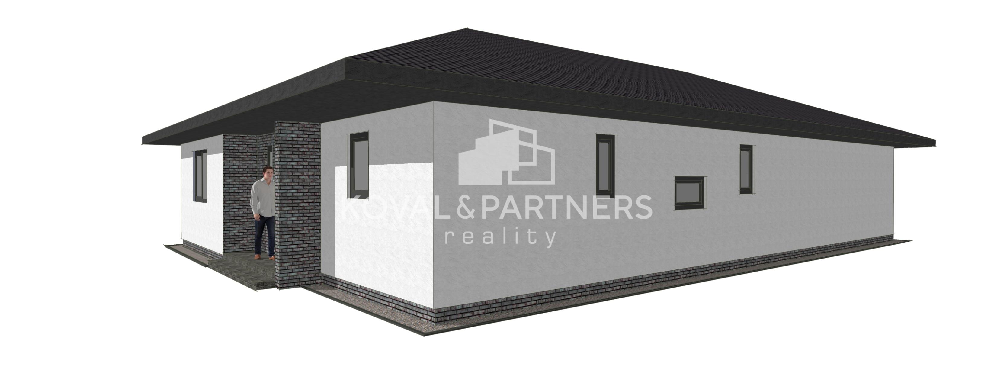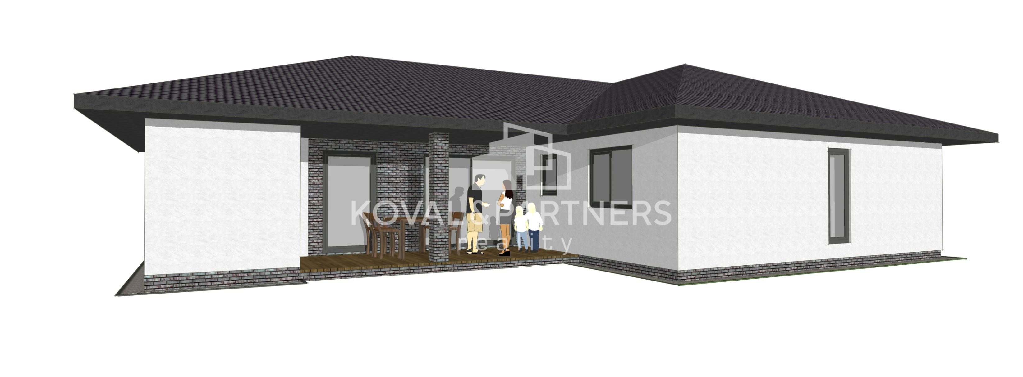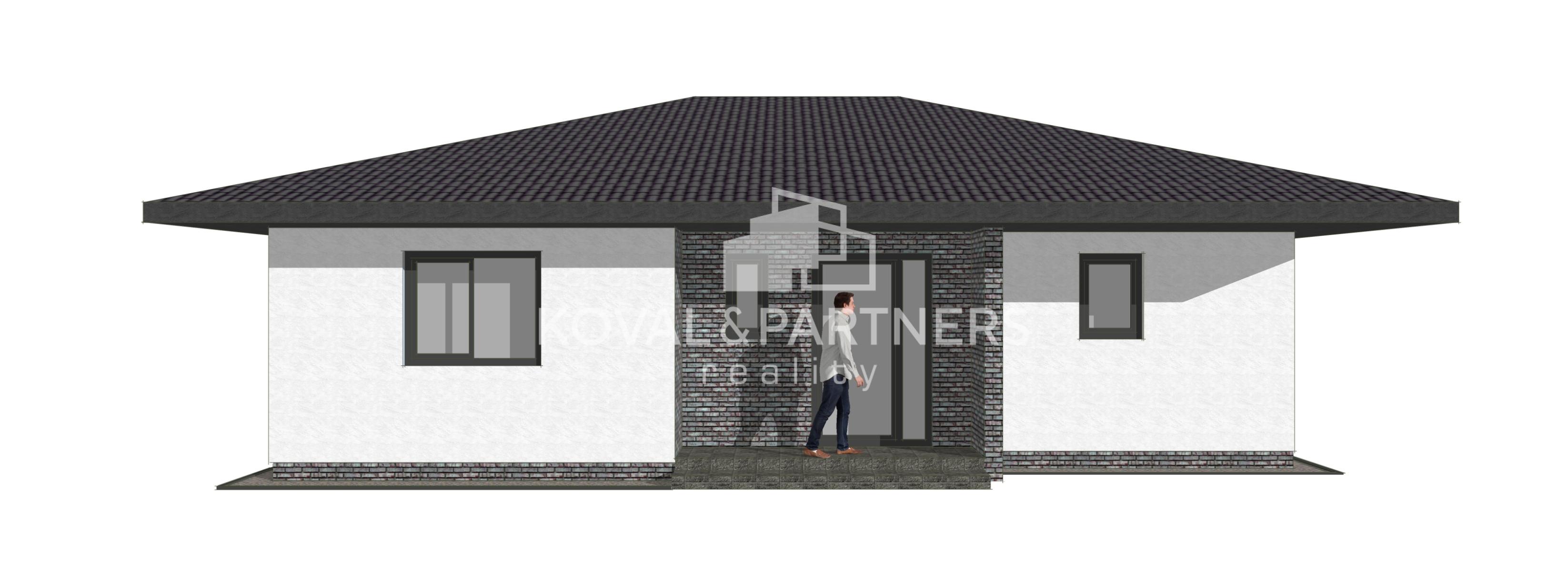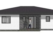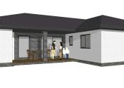 Dom dispozične pozostáva zo vstupnej chodby, samostatnej toalety, technickej miestnosti, chodby, spálne s východom na terasu - veľký priestor na šatník + rodičovská kúpeľňa s toaletou, dvoch neprechodných izieb, kúpeľne s toaletou, špajze, kuchyne prepojenej s obývačkou s východom na terasu.