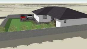 Dom bude postavený na peknom slnečnom, rovinatom pozemku, rozloha pozemku 524 m2, rozmer pozemku cca 24 x 21 m. Pozemok bude oplotený z 3 strán s vyrovnaným terénom. Dom bude napojený na vodu, elektrinu a kanalizáciu. Príjazdová cesta asfaltová, vybudované chodníky a osvetlenie.